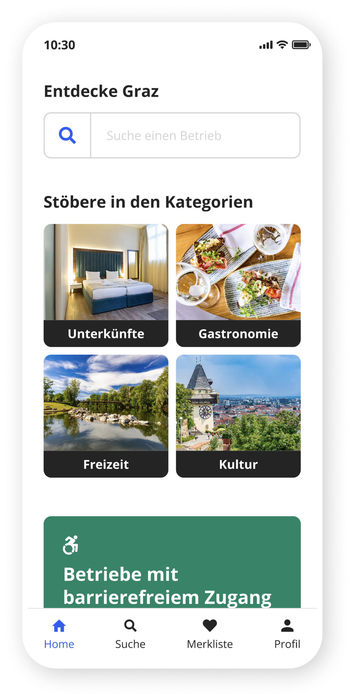 Aktuell können sich Grazer Betriebe aus den Bereichen Hotellerie und Gastronomie, Freizeit und Sport sowie Kunst und Kultur bei accessGraz eintragen.