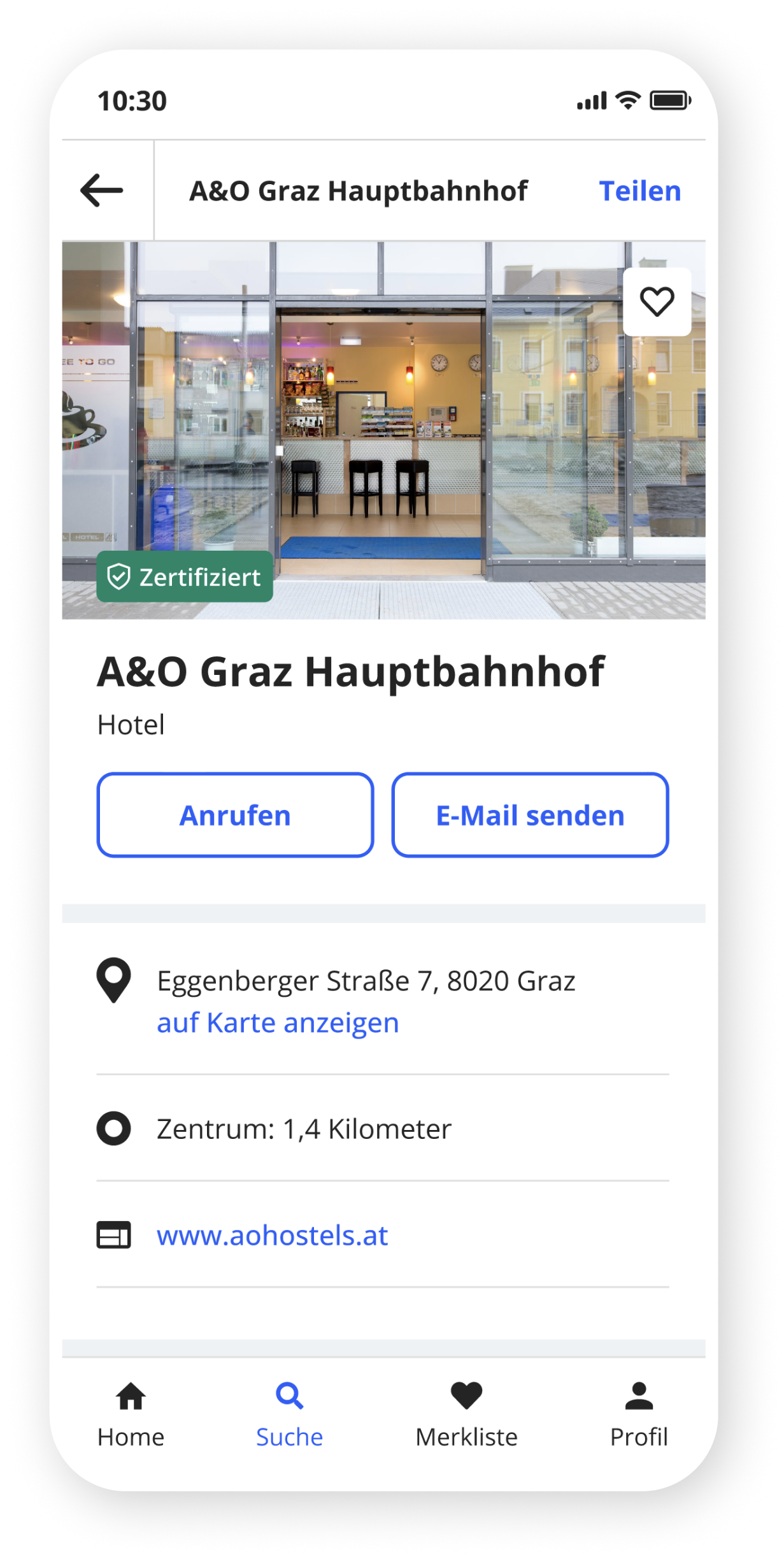 Zertifizierte Betriebe werden in der App extra hervorgehoben, damit potenzielle Kundinnen und Kunden diese schnell und einfach finden können.